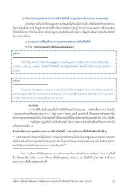 ไว้หรือที่ได้น ามาปรับใช้ในเนื้อหา พร้อมข้อมูลระบุลิขสิทธิ์ของเจ้าของงาน ซึ่งผู้เขียนต้องค านึงถึงเรื่องลิขสิทธิ์