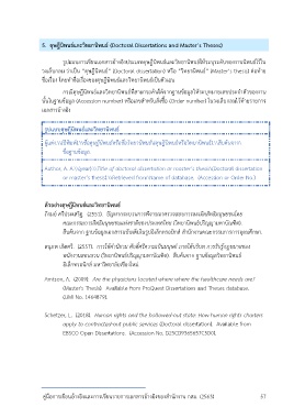 กรณีดุษฎีนิพนธ์และวิทยานิพนธ์ที่สามารถค้นได้จากฐานข้อมูลให้ระบุหมายเลขประจ าตัวของงาน