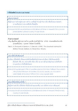 ชื่อผู้อ านวยการสร้าง\(ผู้อ านวยการสร้าง), และชื่อผู้ก ากับ\(ผู้ก ากับ).\\(ปี).\\ชื่อเรื่องของภาพยนตร์\