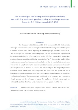 Media Law Institution, Kasem Bundit University and the Expert on Civil Rights, Office of the National