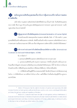 กำาหนดรับรองเสรีภาพของบุคคลในการแสดงความคิดเห็น ในข้อ 19 ซึ่งวางหลักว่า บุคคล