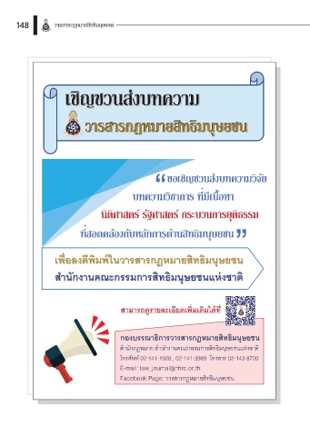 148 วารสารกฎหมายสิทธิมนุษยชน