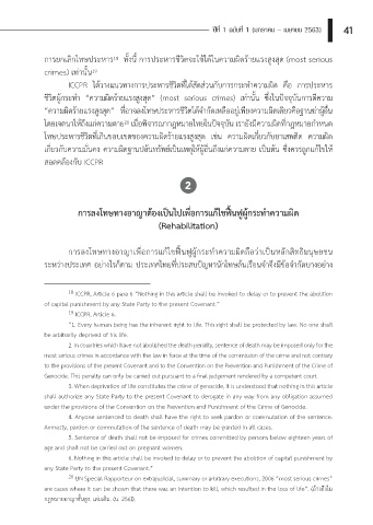 ชีวิตผูกระทํา “ความผิดรายแรงสูงสุด” (most serious crimes) เทานั้น ซึ่งในปจจุบันการตีความ