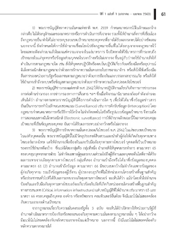 2) พระราชบัญญัติขาวกรองแหงชาติ พ.ศ. 2562 ใหอํานาจปฏิบัติงานเกี่ยวกับกิจการการขาวกรอง