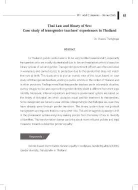 study of 8 transgender teachers, working in public schools in the center of Thailand and