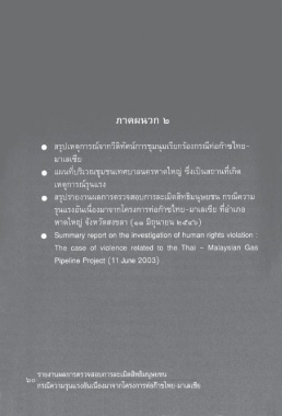 Page 64 - ผลการตรวจสอบการละเมิดสิทธิมนุษยชน : กรณีความรุนแรงอันเนื่องมาจากโครงการท่อก๊าซไทย-มาเลเซีย