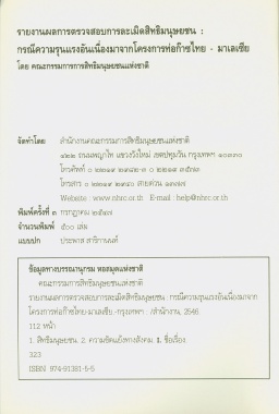 Page 4 - ผลการตรวจสอบการละเมิดสิทธิมนุษยชน : กรณีความรุนแรงอันเนื่องมาจากโครงการท่อก๊าซไทย-มาเลเซีย