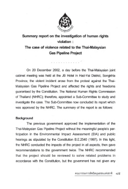 Page 89 - ผลการตรวจสอบการละเมิดสิทธิมนุษยชน : กรณีความรุนแรงอันเนื่องมาจากโครงการท่อก๊าซไทย-มาเลเซีย