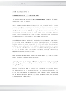 After introducing Thailandûs current efforts to address gender equality issues in the judiciary