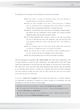 and society supports. Finally, she hoped that the judges would take what they have learned