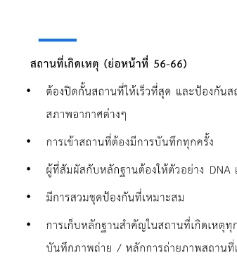 • การเก็บหลักฐานส่าคัญในสถานที่เกิดเหตุทุกกรณีนั้นต้องมีการ