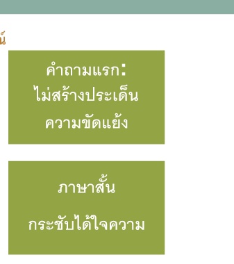 เตรียมคําถามที<ใช้สําหรับการสัมภาษณ์ คําถามแรก: คําถามปลายเปิด ไม่สร้างประเด็น ความขัดแย้ง หลีกเลี<ยง ภาษาสั?น การถามนํา กระชับได้ใจความ
