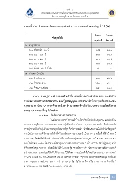 ตารางที่ ๔.๑ จํานวนและร้อยละของกลุ่มตัวอย่าง แจกแจงตามลักษณะข้อมูลทั่วไป (ต่อ)