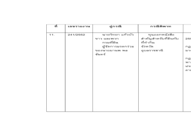 กรณีพิพาท การปฏิบัติต่อปัญหา ลักษณะปัญหา นโยบายและ กฎหมาย 1.พ.ศ. 2536 ทําหนังสือ 1. ที่ดินมีการครอบครองทํา รัฐธรรมนูญ ทุนออกหนังสือ ร้องเรียนไปที่กระทรวงมหาดไทย ประโยชน์แต่ไม่มีหลักฐานสําหรับที่ดิน 2550 มาตรา 41, 59 สําคัญสําหรับที่ดินทับ 2.พ.ศ. 2543 ร้องเรียน 2. ถูกกลุ่มนายทุนห
