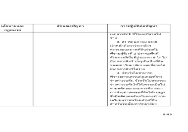 การปฏิบัติต่อปัญหา เอกสารสิทธิ ที่ไร่และที่สวนไม่ จ่าย 3. 21 พฤษภาคม 2549 เจ้าหน้าที่มหาวิทยาลัยฯ ตรวจสอบสภาพที่ดินร่วมกับ พี่ชายผู้ร้องที่ 2 ปรากฏพื้นที่ ดังกล่าวมีเนื้อที่ประมาณ 8 ไร่ ไม่ มีเอกสารสิทธิ ป ั จจุบันเป็นที่ดิน ของมหาวิทยาลัยฯ และที่สวนไม่ มีเอกสารสิทธิไม่จ่าย 4. จังหวัดไม่สามารถ พิจาร