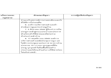 ลักษณะปัญหา จํานองกับสหกรณ์การเกษตรเมืองและยัง 6. องค์การบริหารส่วนตําบลเข้า 7. 5 สิงหาคม 2549 ผู้ร้องทําการปิด ประตูทางเข้าสู่ระบบประปาและประกาศ ห้ามใครเข้าที่พิพาทและตัดท่อจ่าย 8. 17 พฤศจิกายน 2549 องค์การ บริหารส่วนตําบลนัดประชุมราษฎร แต่ ไม่มีการประชุมตามประกาศ พาชาวบ้าน ประมาณ 10 กว่าคน ทุบกุญแจท