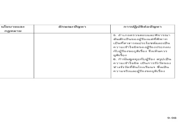 การปฏิบัติต่อปัญหา อําเภอตรวจสอบและพิจารณา ต้นสักเป็นของผู้ร้องแต่ที่พิพาท เป็นที่สาธารณประโยชน์และเป็น ความเข้าใจผิดของผู้ร้องประกอบ กับผู้ร้องขอยุติเรื่อง จึงเห็นควร 6. กํานันพูดคุยกับผู้ร้อง สรุปเป็น ความเข้าใจผิด เป็นการรังวัดของ ช่างรังวัดที่ดินโรงเรียนฯ ซึ่งเป็น ความจริงและผู้ร้องขอยุติเรื่อง