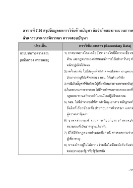 ตารางที่ 7.20 สรุปข้อมูลผลการวิจัยด้านปัญหา ข้อจ ากัดของกระบวนการตรวจสอบการละเมิดสิทธิมนุษยชน