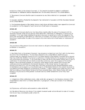 accession. 2. For each State ratifying the present Covenant or acceding to it after the deposit of the