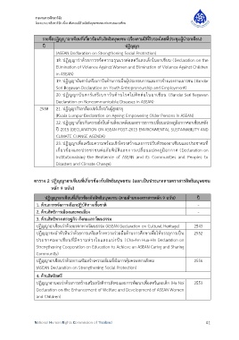 ตาราง 2 ปฏิญญาอาเซียนที่เกี่ยวข้องกับสิทธิมนุษยชน (แยกเป็นประเภทตามตราสารสิทธิมนุษยชน