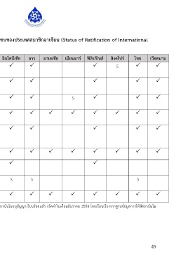 หมายเหตุ : S = การลงนาม (Signing) และเครื่องหมาย () คือการที่ประเทศสมาชิกให้สัตยาบันในอนุสัญญาเรียบร้อยแล้ว (จัดท าในเดือนธันวาคม 2558 โดยเรียบเรียงจากฐานข้อมูลการให้สัตยาบันใน