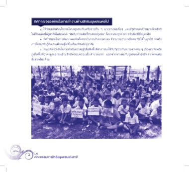 ๓. มีแนวคิดร่วมกันในการดำาเนินการต่อสู้เพื่อคืนพื้นที่สาธารณะให้กับรัฐร่วมกับหน่วยงานต่าง ๆ เนื่องจากจังหวัด