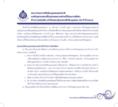 ขอเชิญร่วมเสนอชื่อบุคคลและองค์กรเข้ารับการคัดเลือกเพื่อรับรางวัลบุคคลและองค์กรที่มีผลงานดีเด่นด้านการส่งเสริม