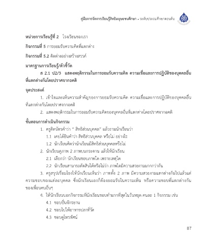 2. แสดงพฤติกรรมในการยอมรับความคิดของบุคคลอื่นที่แตกตางโดยปราศจากอคติ