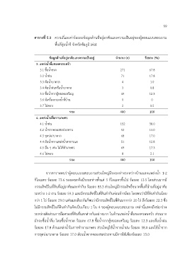 ตารางที่ 5.3 ความถี่และค่าร้อยละข้อมูลด้านที่อยู่อาศัยและความเป็นอยู่ของผู้ตอบแบบสอบถาม