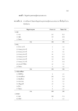 ตารางที่ 5.13 ความถี่และค่าร้อยละข้อมูลส่วนบุคคลของผู้ตอบแบบสอบถาม พื้นที่ลุ่มน้้าน่าน