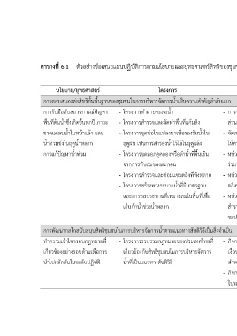 ตารางที่ 6.1 ตัวอย่างข้อเสนอแผนปฏิบัติการตามนโยบายและยุทธศาสตร์สิทธิของชุมชนในการจัดสรรทรัพยากรน้้าด้วยแนวทางสันติวิธีในพื้นที่ต้นน้้าของประเทศไทย