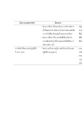 - โครงการศึกษาวิจัยบทเรียนการบริหารจัดการ - ส่งเสริมให้หน่วยงานต่าง ๆ ศึกษาวิจัยประเด็นที่