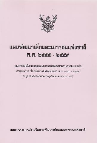แผนพัฒนาเด็กและเยาวชนแห่งชาติ พ.ศ. 2555-2559 : ผนวกรวมนโยบายและแผนยุทธศาสตร์ระดับชาติด้านการพัฒนาเด็กตามแนวทาง"โลกที่เหมาะสมสำหรับเด็ก" พ.ศ. 2550-2559 กับยุทธศาสตร์จังหวัดน่าอยู่สำหรับเด็กและเยาวชน คณะกรรมการส่งเสริมการพัฒนาเด็กและเยาวชนแห่งชาติ กระทรวงการพัฒนาสังคมและความมั่นคงของมนุษย์