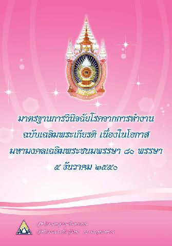 มาตรฐานการวินิจฉัยโรคจากการทำงานฉบับเฉลิมพระเกียรติ เนื่องในโอกาสมหามงคลเฉลิมพระชนมพรรษา 80 พรรษา 5 ธันวาคม 2550 / โยธิน เบญจวัง บรรณาธิการ