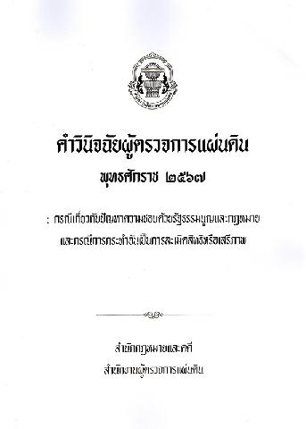 คำวินิจฉัยผู้ตรวจการแผ่นดิน พุทธศักราช 2567 : กรณีเกี่ยวกับปัญหาความชอบด้วยรัฐธรรมนูญและกฎหมาย และกรณีการกระทำอันเป็นการละเมิดสิทธิหรือเสรีภาพ สำนักงานผู้ตรวจการแผ่นดิน