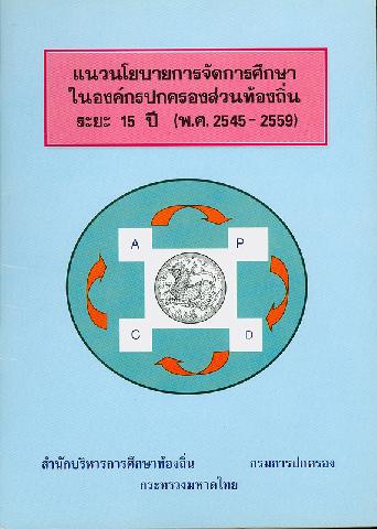 แนวนโยบายการจัดการศึกษาในองค์กรปกครองส่วนท้องถิ่น ระยะ 15 ปี (พ.ศ. 2545-2559) สำนักบริหารการศึกษาท้องถิ่นกรม การปกครอง กระทรวงมหาดไทย