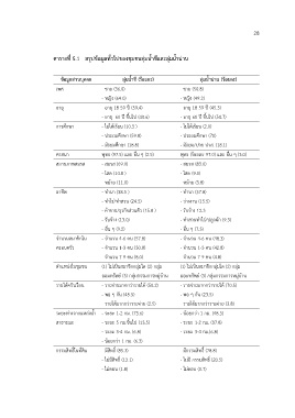 ตารางที่ 5.1 สรุปข้อมูลทั่วไปของชุมชนลุ่มน าชีและลุ่มน าน่าน