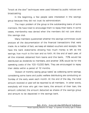 Page 100 - "ผู้หญิง...สร้างบ้าน" : เรื่องเล่า...มุ่งสร้างทางสลัมจากประสบการณ์การพัฒนาสิทธิในที่อยู่อาศัยของผู้หญิงชุมชน