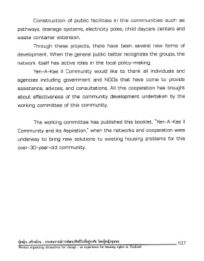 Page 107 - "ผู้หญิง...สร้างบ้าน" : เรื่องเล่า...มุ่งสร้างทางสลัมจากประสบการณ์การพัฒนาสิทธิในที่อยู่อาศัยของผู้หญิงชุมชน