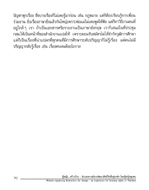 Page 70 - "ผู้หญิง...สร้างบ้าน" : เรื่องเล่า...มุ่งสร้างทางสลัมจากประสบการณ์การพัฒนาสิทธิในที่อยู่อาศัยของผู้หญิงชุมชน