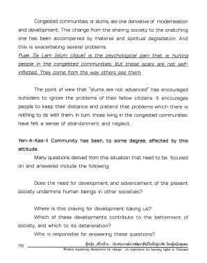 Page 78 - "ผู้หญิง...สร้างบ้าน" : เรื่องเล่า...มุ่งสร้างทางสลัมจากประสบการณ์การพัฒนาสิทธิในที่อยู่อาศัยของผู้หญิงชุมชน