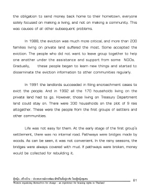 Page 81 - "ผู้หญิง...สร้างบ้าน" : เรื่องเล่า...มุ่งสร้างทางสลัมจากประสบการณ์การพัฒนาสิทธิในที่อยู่อาศัยของผู้หญิงชุมชน