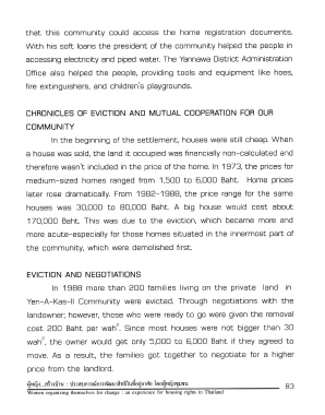 Page 83 - "ผู้หญิง...สร้างบ้าน" : เรื่องเล่า...มุ่งสร้างทางสลัมจากประสบการณ์การพัฒนาสิทธิในที่อยู่อาศัยของผู้หญิงชุมชน