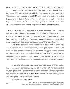 Page 86 - "ผู้หญิง...สร้างบ้าน" : เรื่องเล่า...มุ่งสร้างทางสลัมจากประสบการณ์การพัฒนาสิทธิในที่อยู่อาศัยของผู้หญิงชุมชน