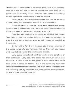 Page 90 - "ผู้หญิง...สร้างบ้าน" : เรื่องเล่า...มุ่งสร้างทางสลัมจากประสบการณ์การพัฒนาสิทธิในที่อยู่อาศัยของผู้หญิงชุมชน