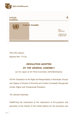 53/144. Declaration on the Right and Responsibility of Individuals, Groups