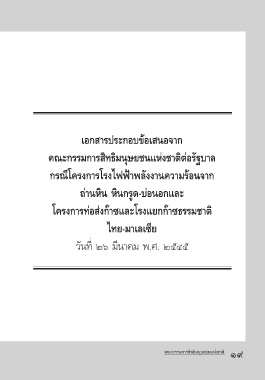 Page 20 - ข้อเสนอจากคณะกรรมการสิทธิมนุษยชนแห่งชาติต่อรัฐบาล กรณีโครงการโรงไฟฟ้าพลังงานความร้อนจากถ่านหิน หินกรูด-บ่อนอก และโครงการท่อส่งก๊าซและโรงแยกก๊าซธรรมชาติ ไทย-มาเลเซีย