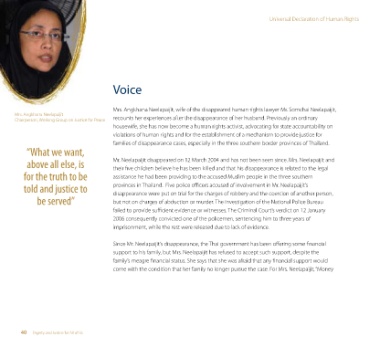 Mrs. Angkhana Neelapaijit recounts her experiences after the disappearance of her husband. Previously an ordinary