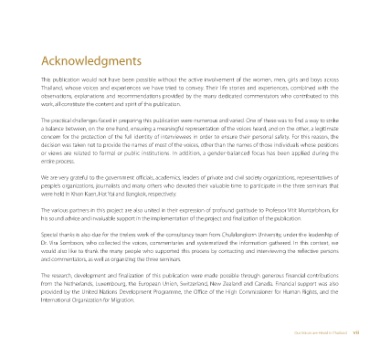 Thailand, whose voices and experiences we have tried to convey. Their life stories and experiences, combined with the