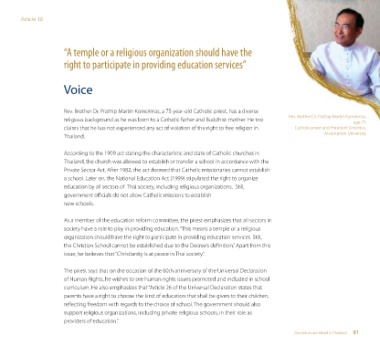 Rev. Brother Dr. Prathip Martin Komolmas, a 75-year-old Catholic priest, has a diverse